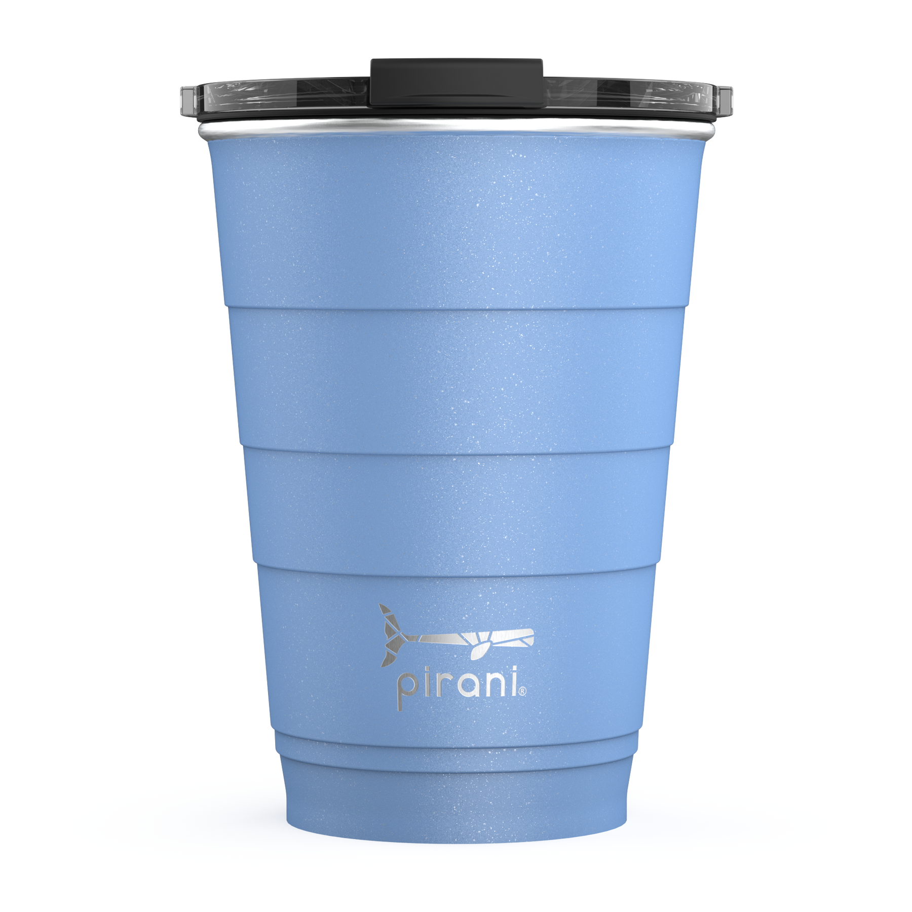 The Pirani Party Tumbler can hold 16 fl oz (473 ml) of your preference.